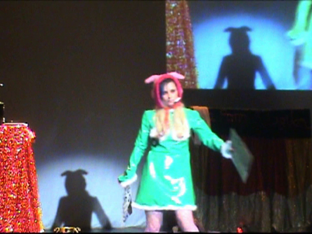 The Porno Karaoke Show guests are asked to synchronize vanilla sex, Oswald Kolle and hardcore film clips. Thereby their tongues are beeing released of the vice of articulation. They are beginning to dominate the virtuosity of sound. Their whispering is building up erotic worlds as light as Scandinavian air, smooth as Arabic Vaseline, soft as a Hungarian wool, attracting like the magnet of an erotomaniac, soft as a baby's bum and elastic as latex from the Czech Republic.